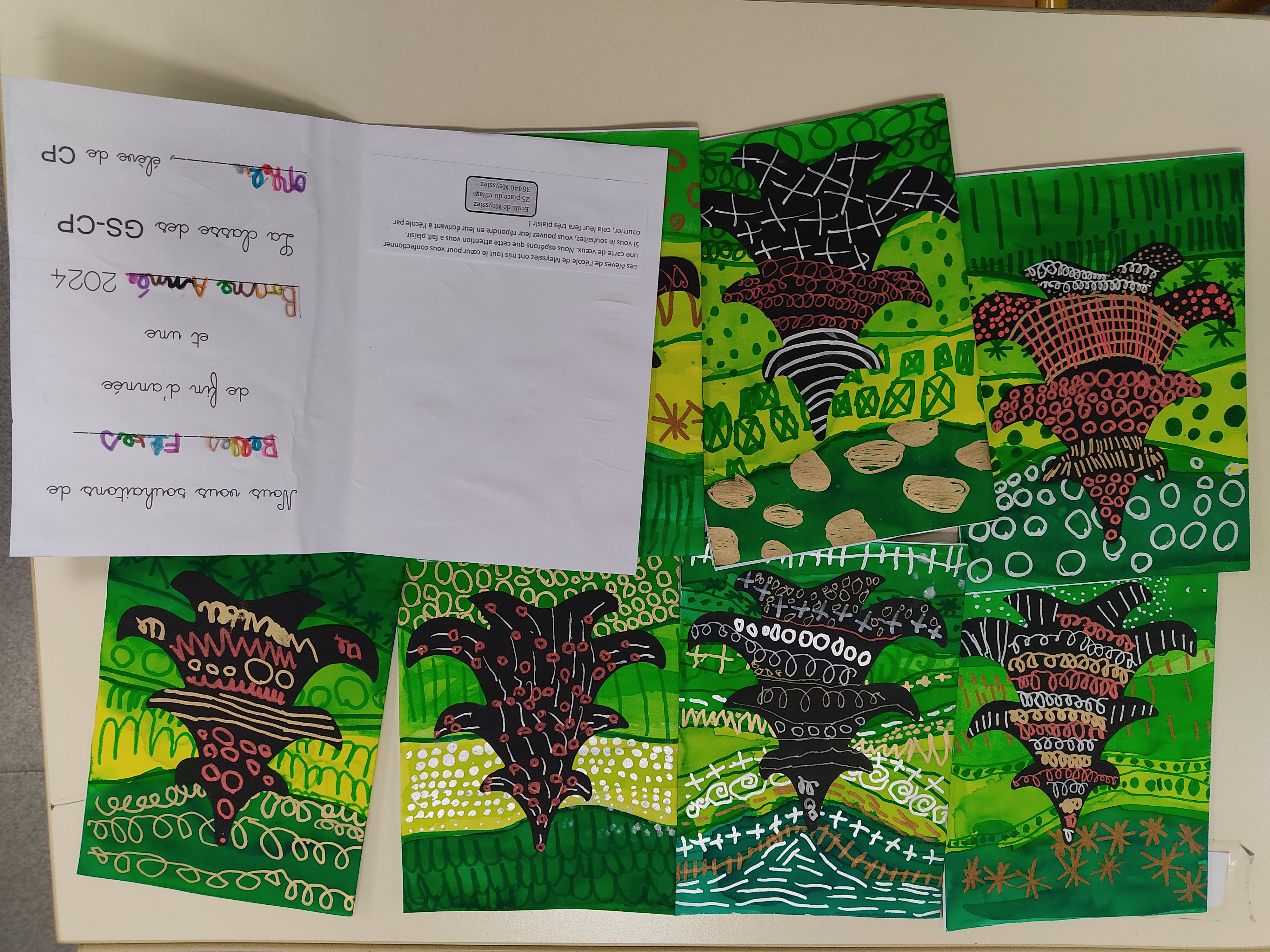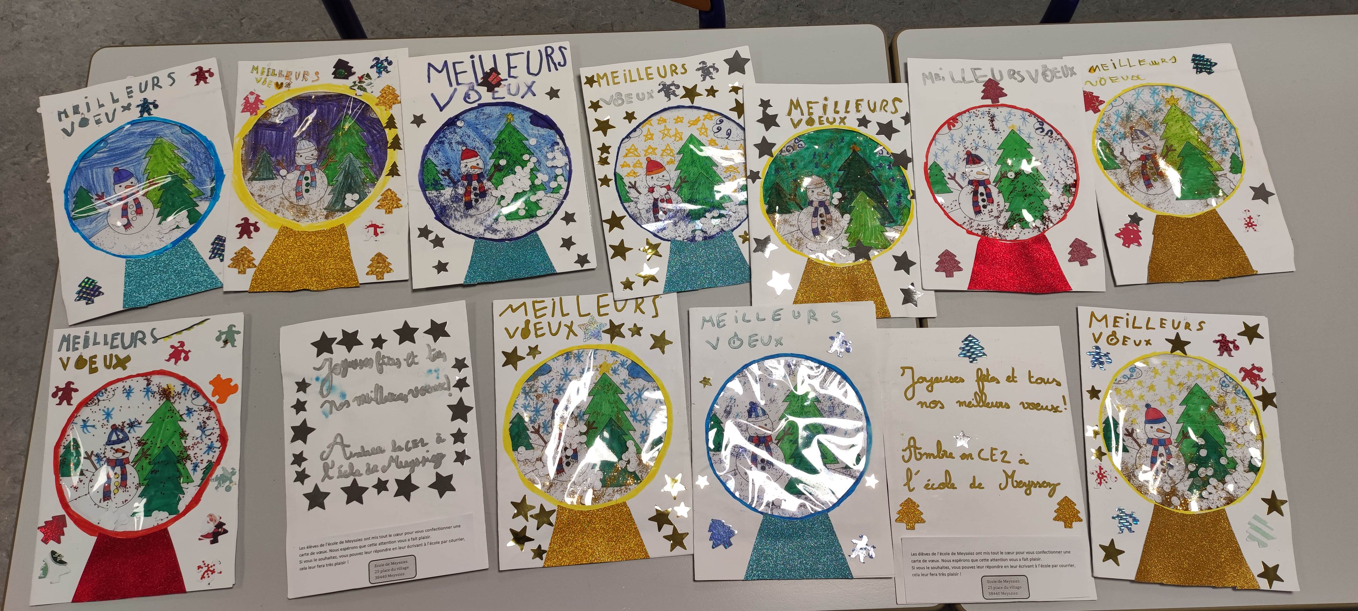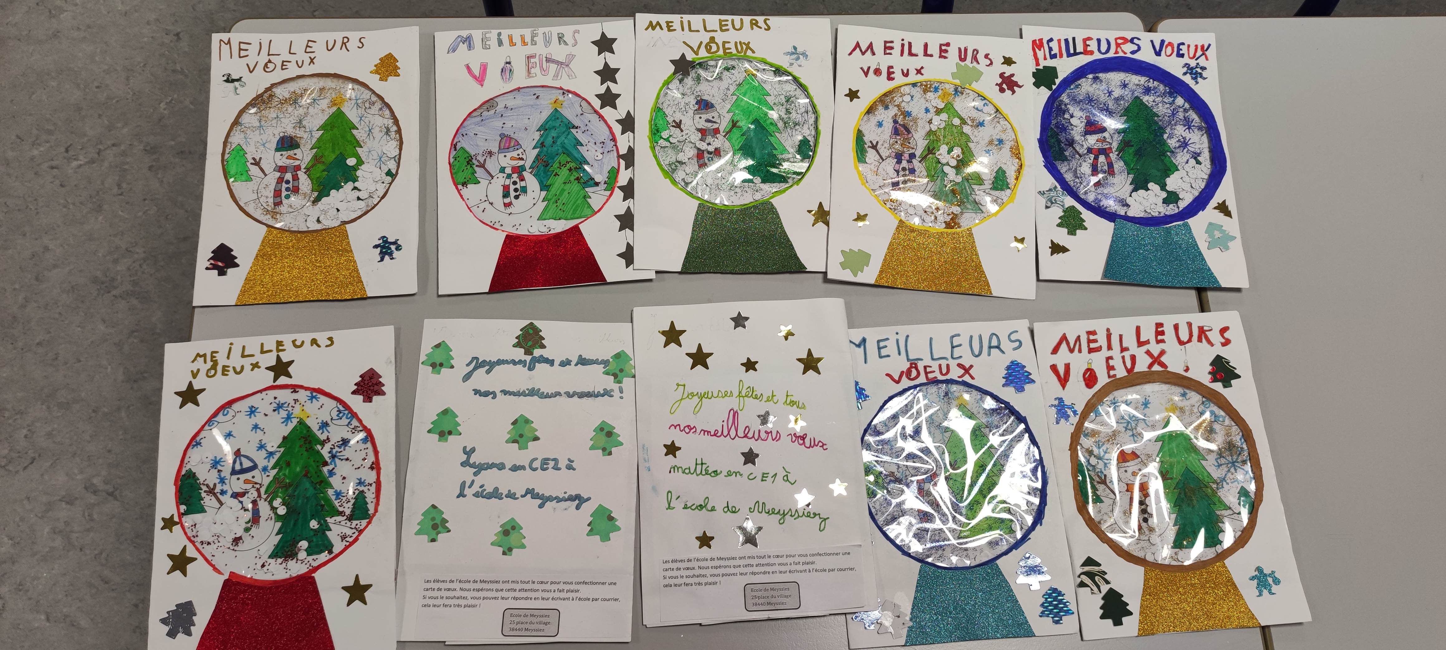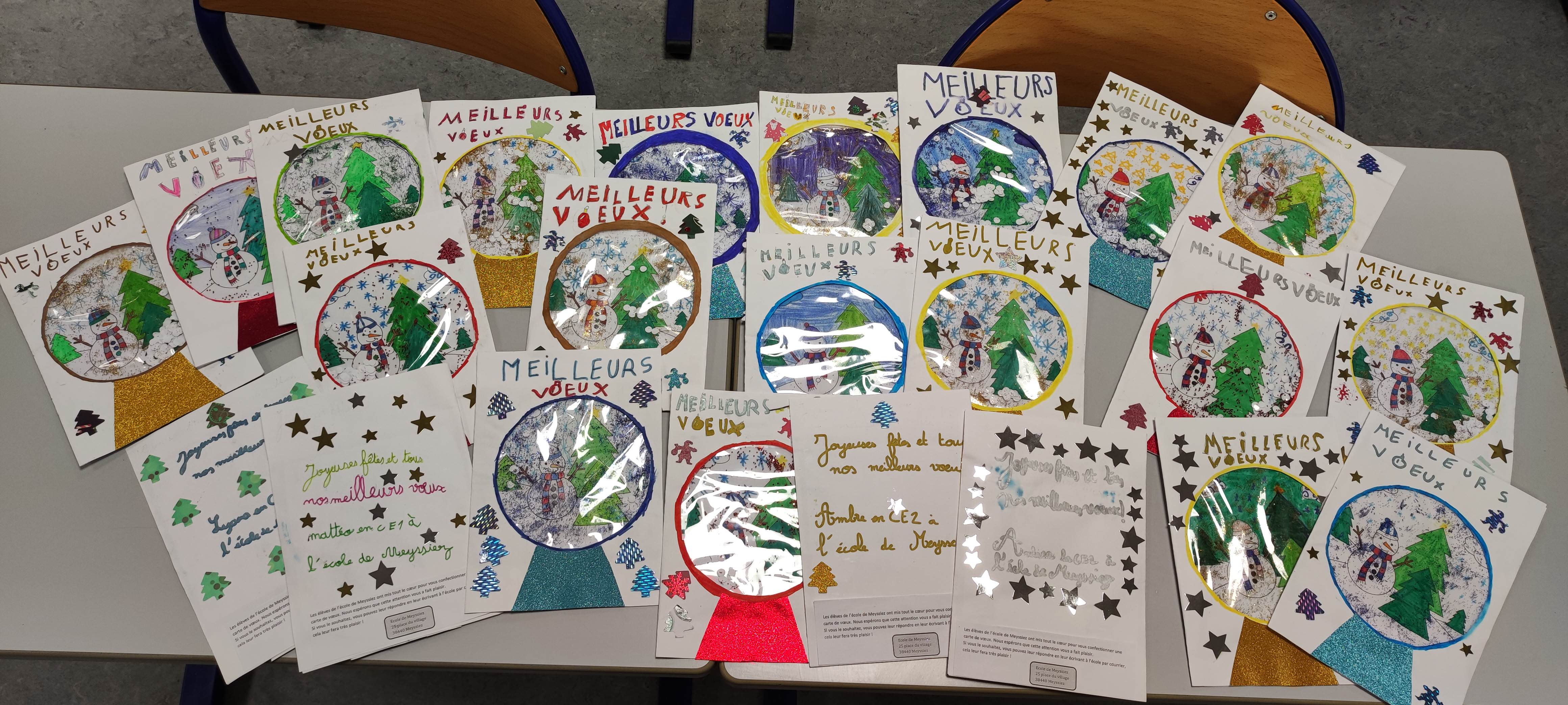 Afin de favoriser les échanges intergénérationnels au sein de notre village, chaque élève de l'école a confectionné une carte de voeux pour un "sénior" du village.