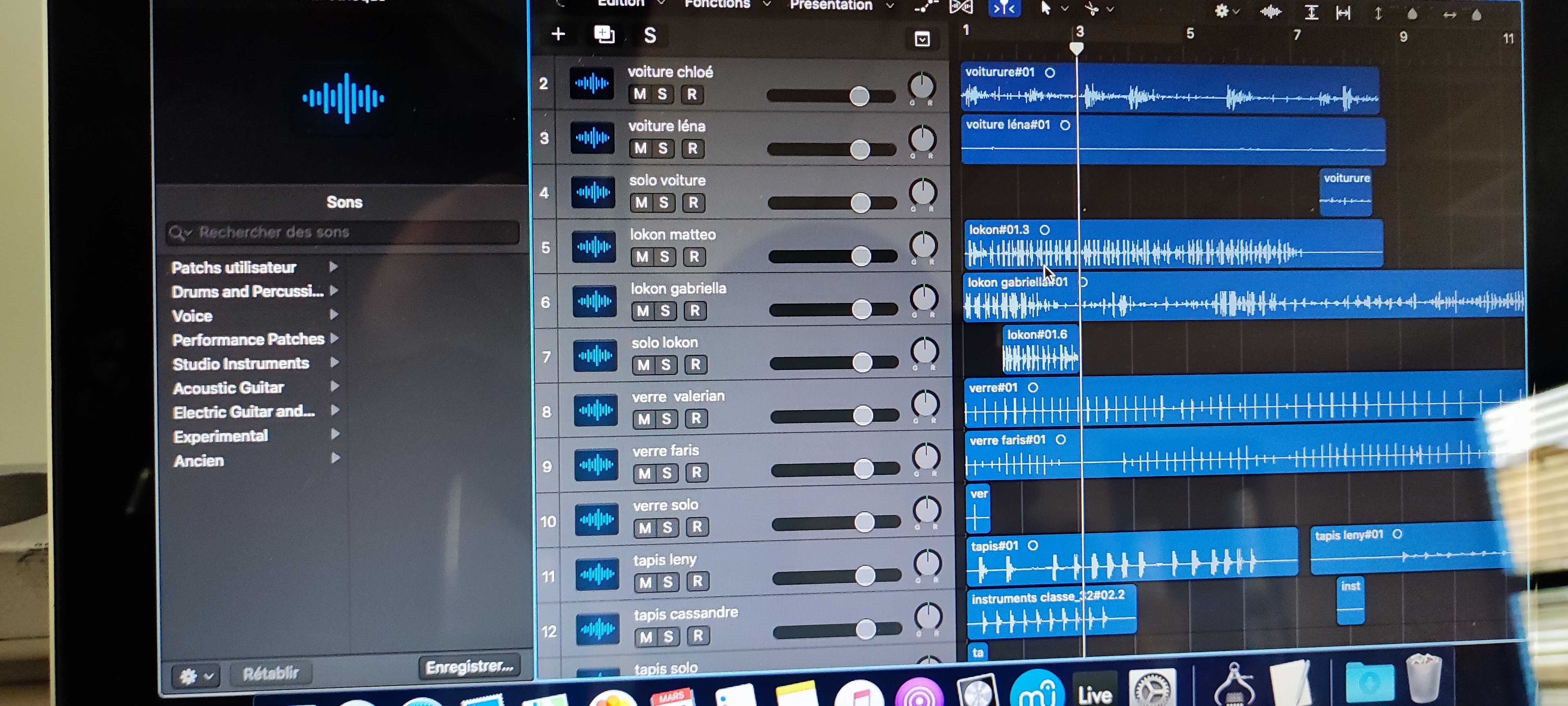 Les CE2 CM1 CM2 ont déjà trouvé les paroles et la mélodie. Les CE2 CM1 CM2 chanteront les couplets et les refrains sur la chanson et seront enregistrés par 3 ou 4 élèves à la fois. Ce sera l’occasion de découvrir comment s’utilise un logiciel de Musique Assistée par Ordinateur MAO (Logic pro X) en décloisonnement.