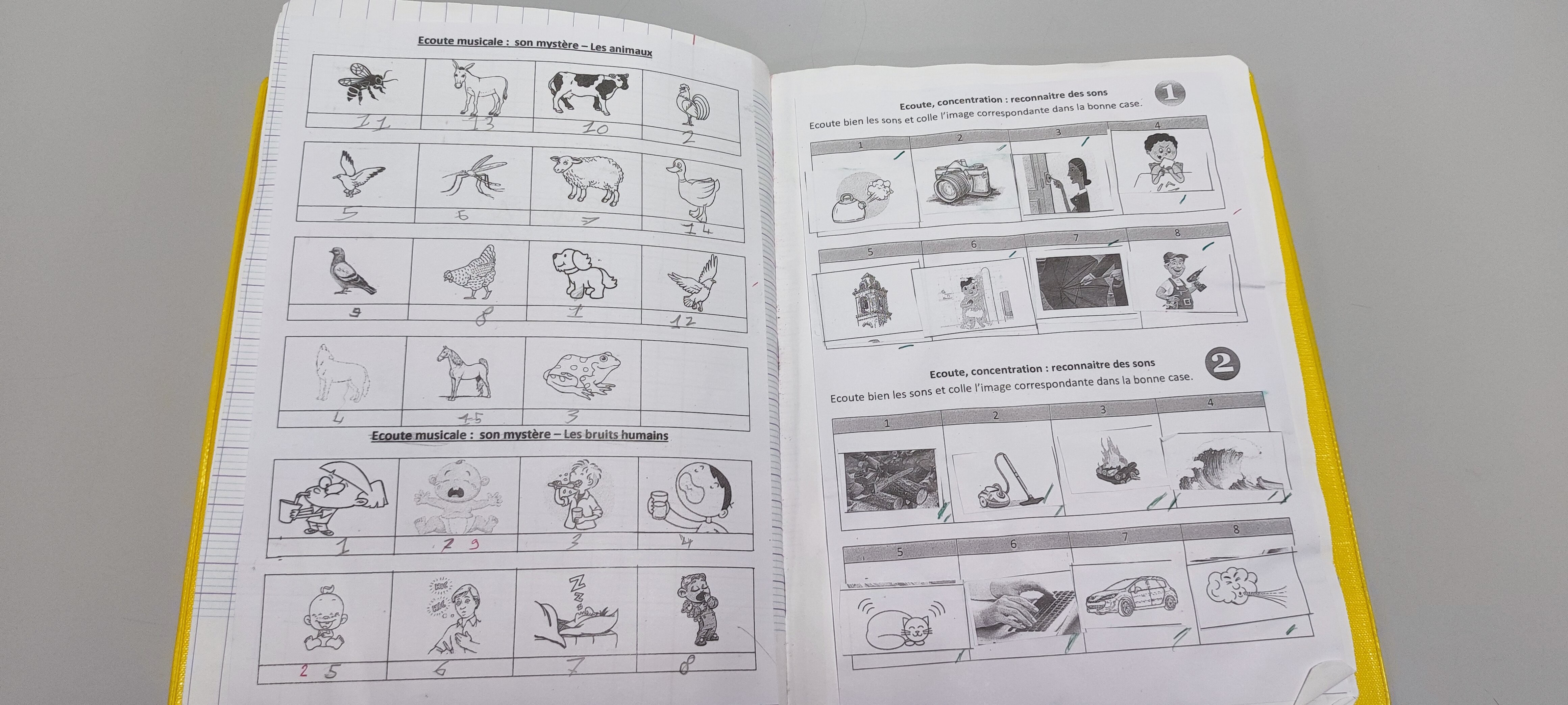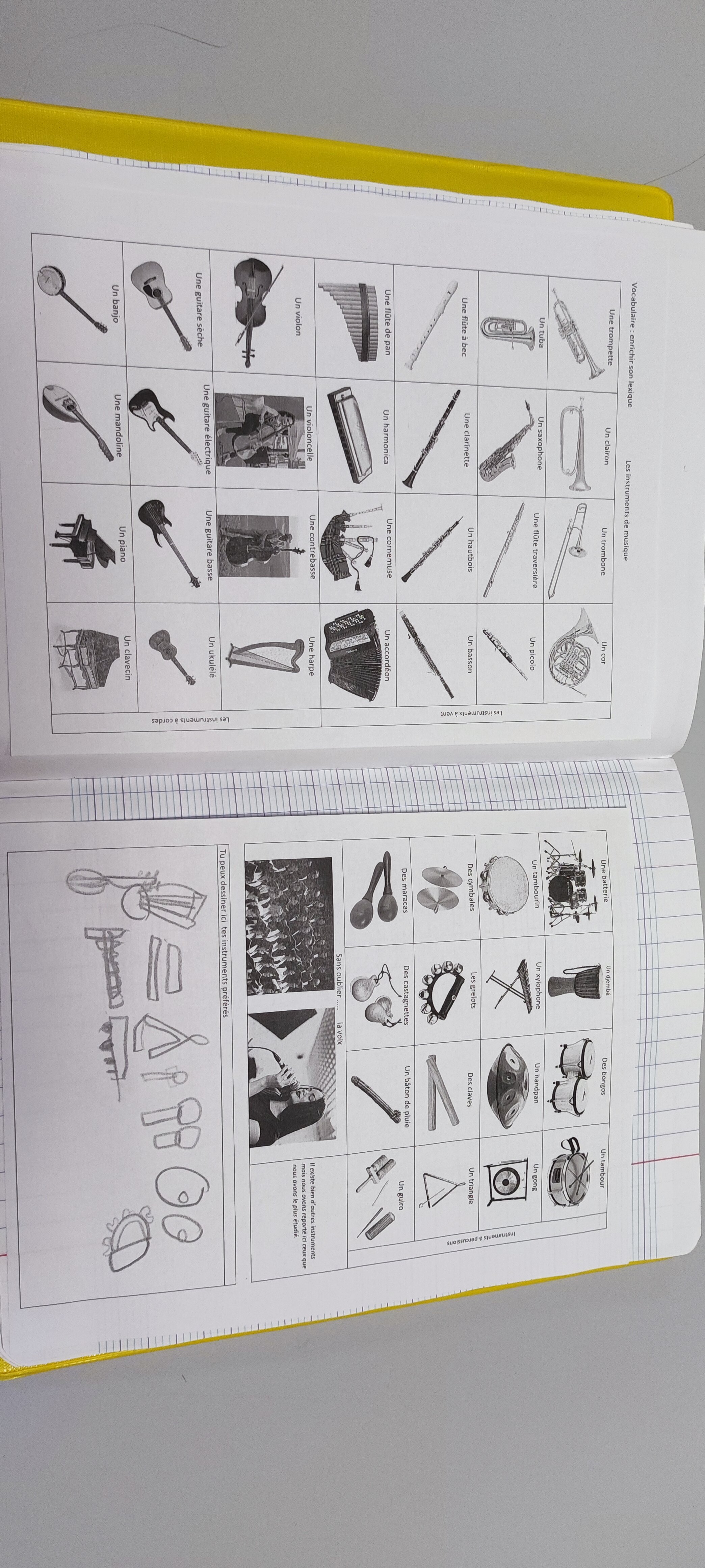 La plupart des activités liées à ce projet musique s'écoutent, il est donc difficile de faire des photos des travaux réalisés. Voici tout de même quelques images des traces du travail des élèves, des exercices, du matériel disponible en classe...