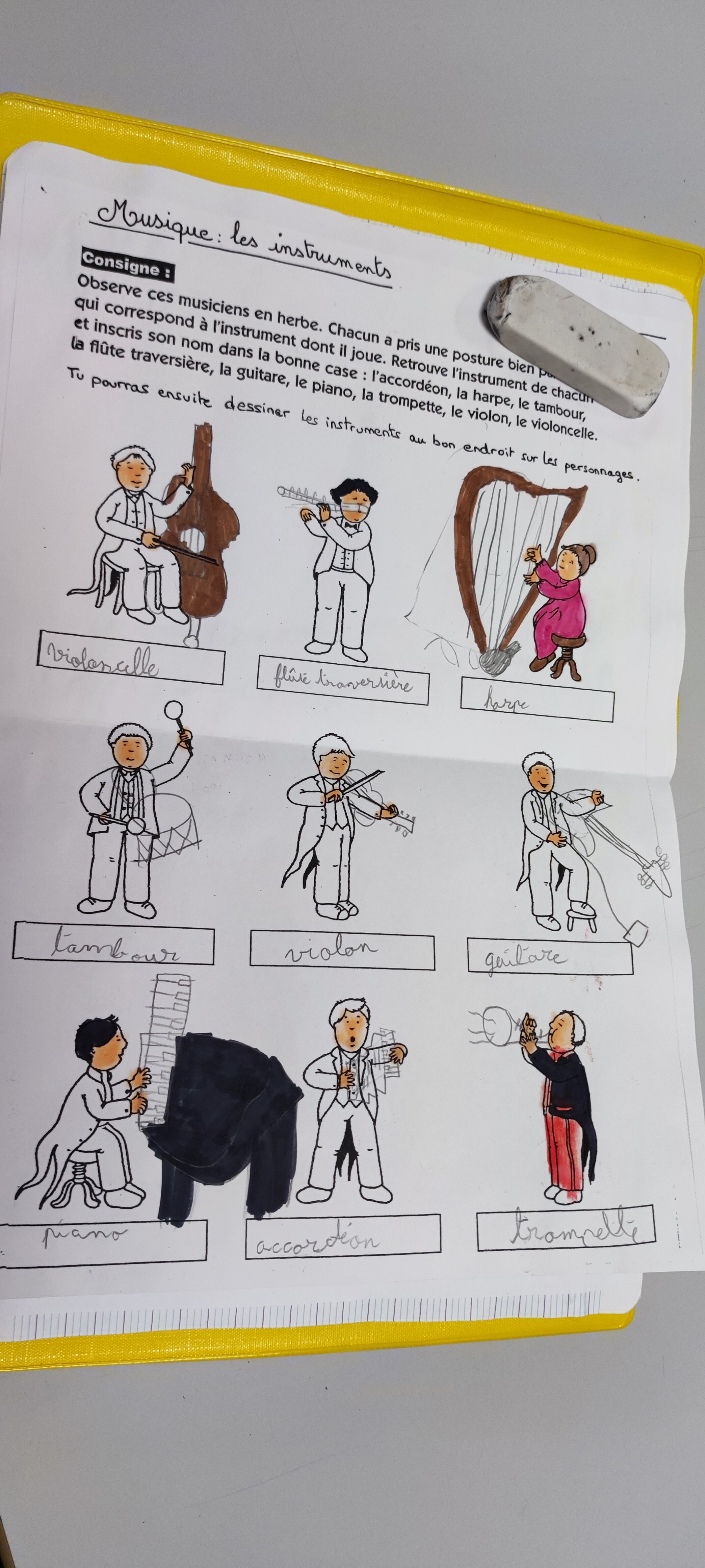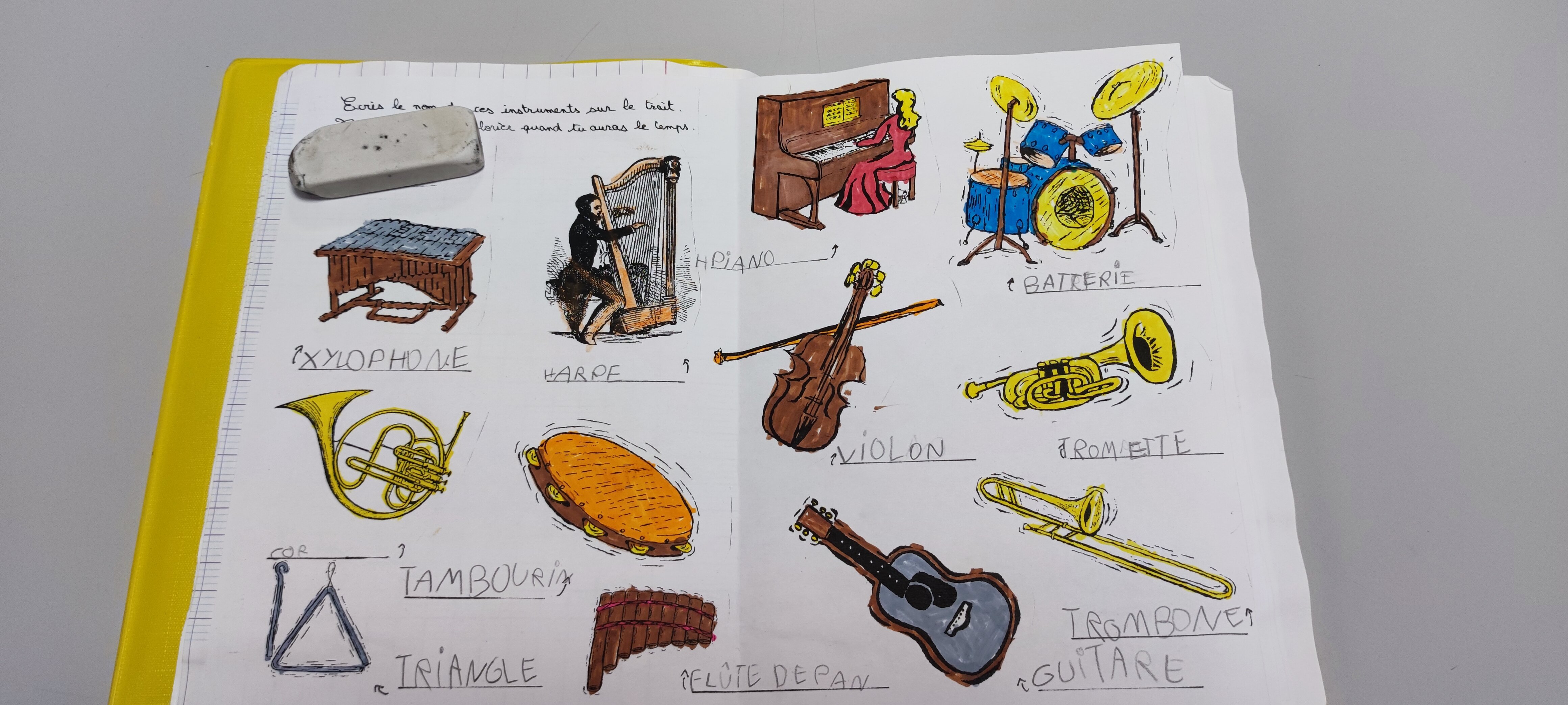 Les élèves et les maîtresses on aussi apporté des instruments en classe pour les montrer et les faire essayer aux autres. C'était très enrichissant et très intéressant pour les enfants de pouvoir voir les instruments en vrai et pouvoir les essayer.