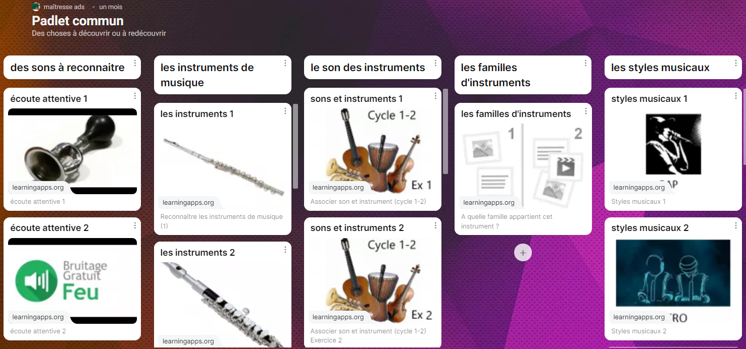Grâce au financement du Sou des écoles, les classe bénéficient aussi de matériel comme une enceinte Bluetooth, des instruments de musique et même des mp3 pour favoriser les temps d'écoute musicale.