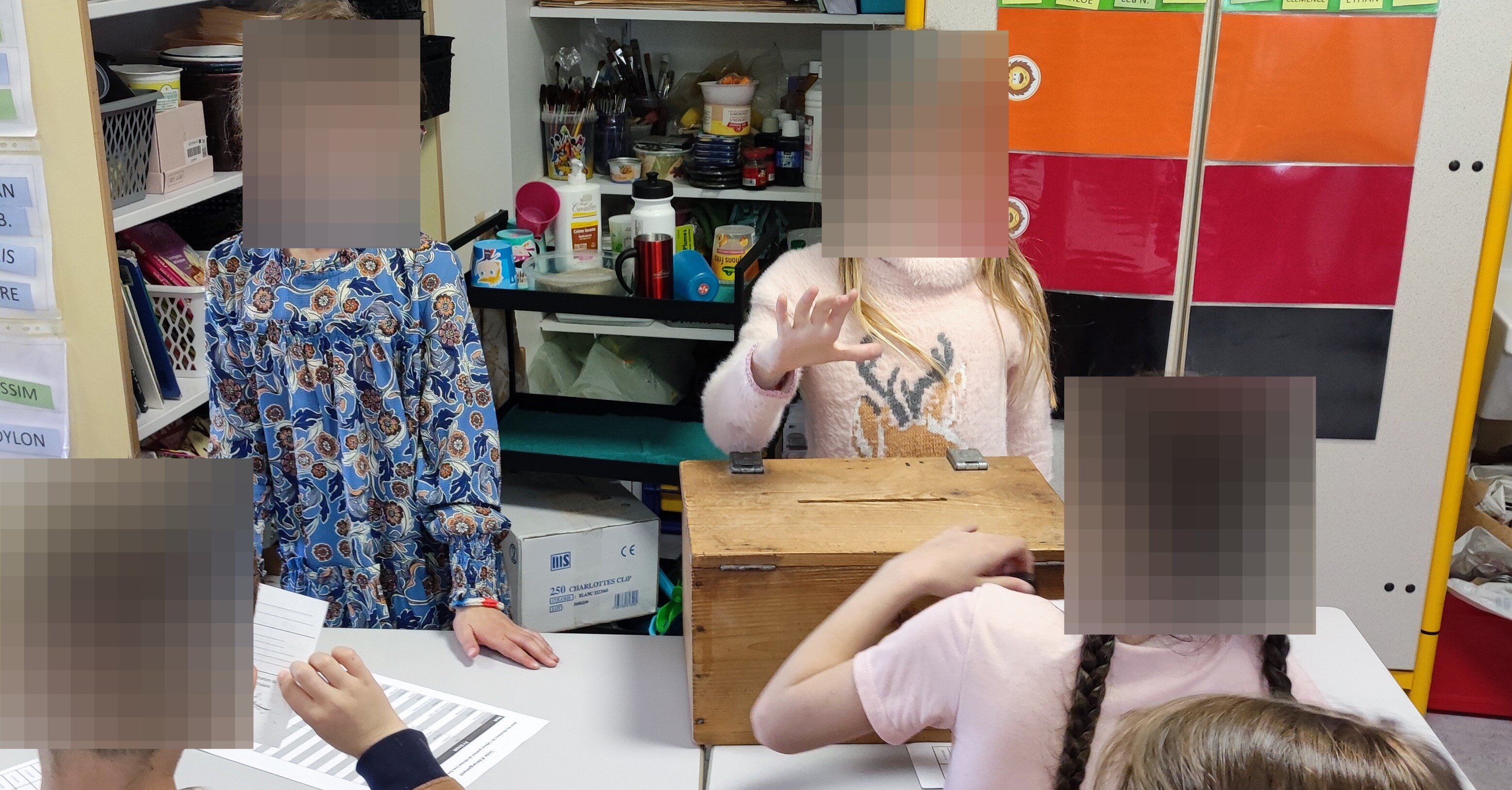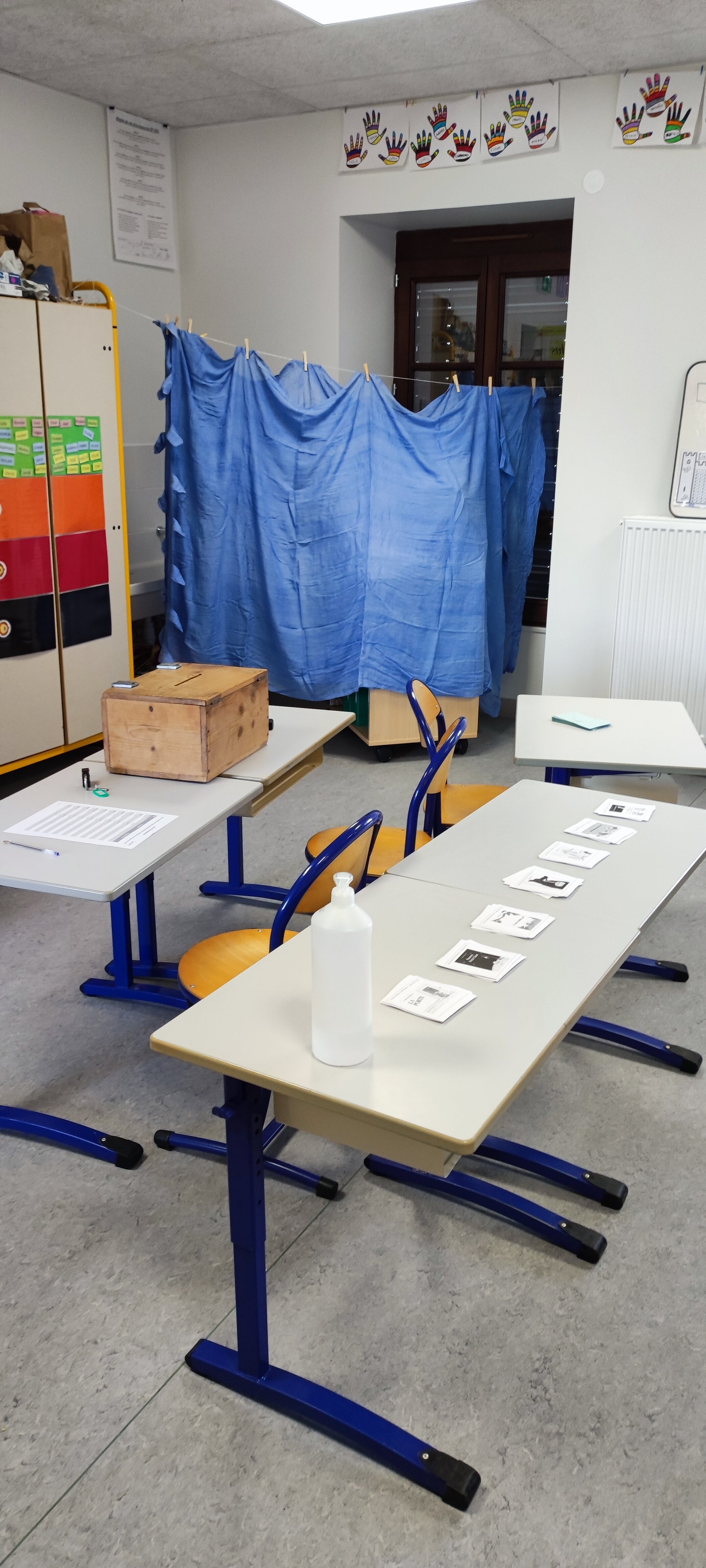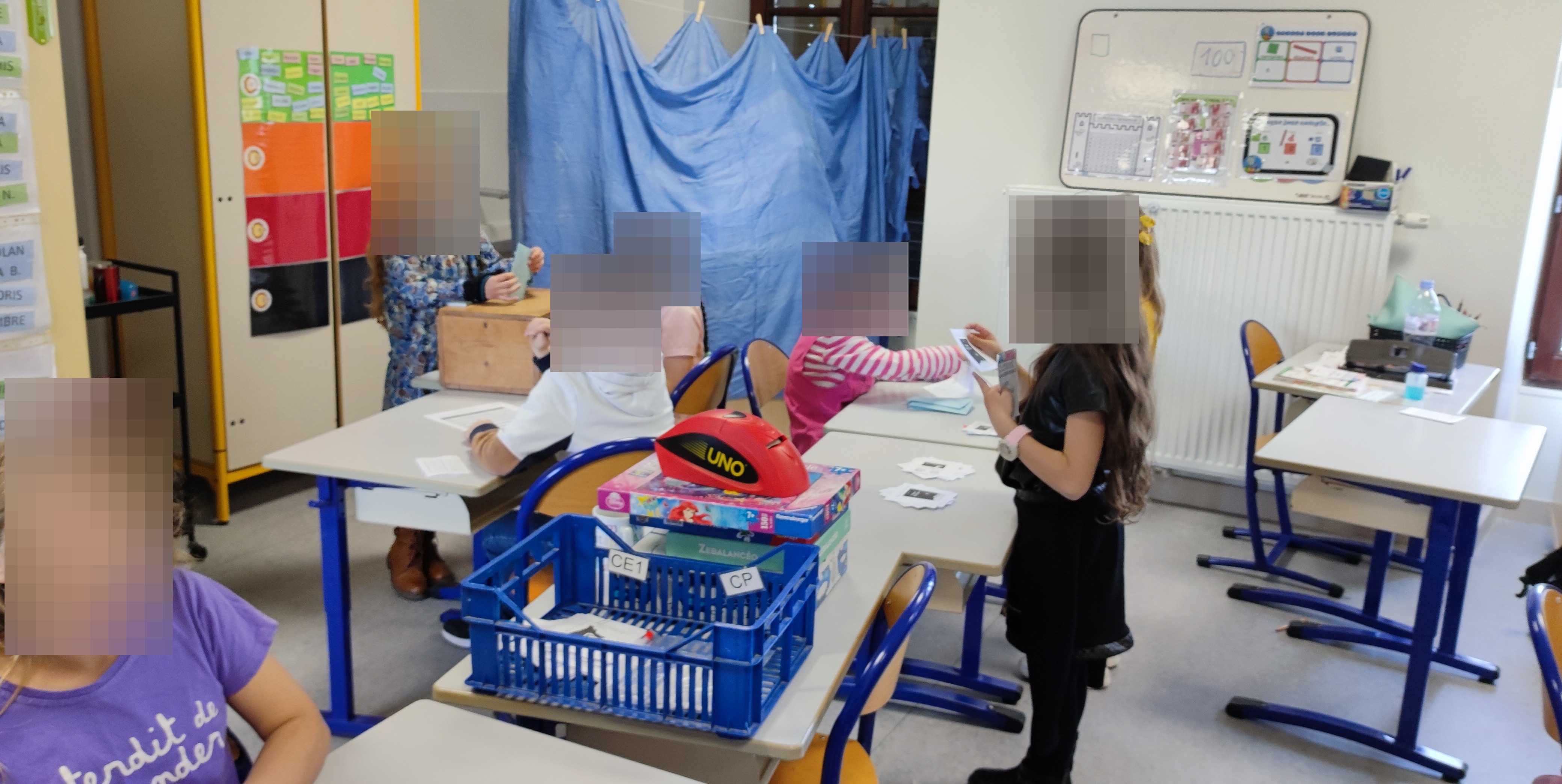 Nous avons donc tout préparé et mis en place un bureau de vote dans la classe avec les bulletins, les enveloppes, l'isoloir, l'urne, la liste d'émargement, les carte d'électeurs...